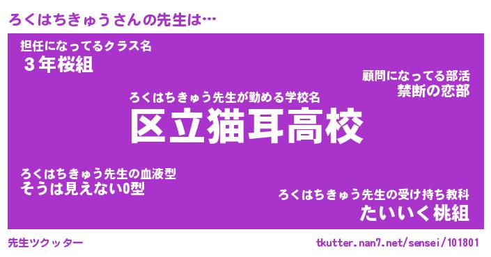 | ヘコむあだ名 | 『ろくにー』『酢こんぶ』『ろく太郎』 |