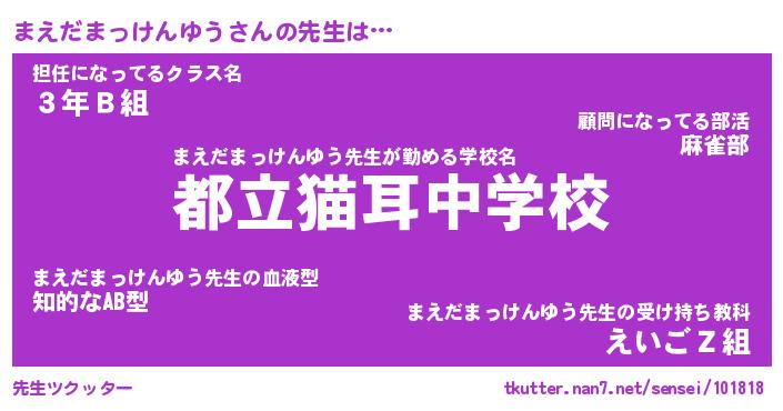 | 意味不明あだ名 | 『ペロリンまえだまっけんゆう』 |