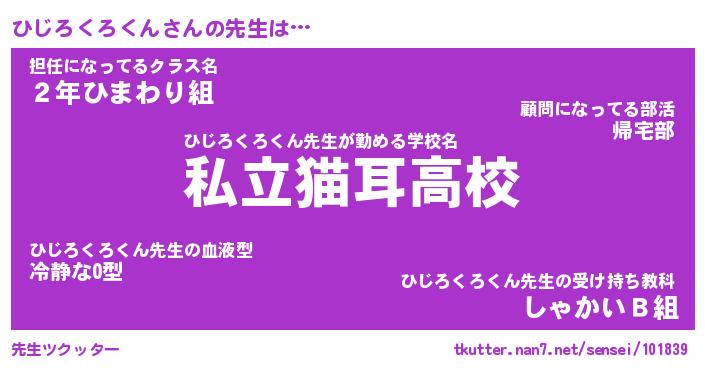 | 男性向けラノベタイトル風あだ名 | 『ひじろくろくんの憂鬱』 |