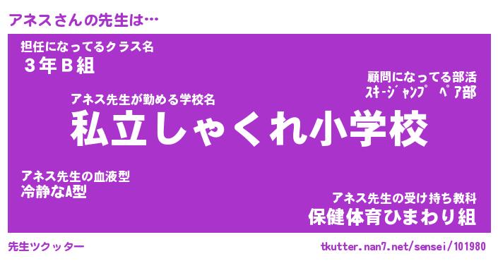 | 意味不明あだ名 | 『ペロリンアネス』『アネスフォーエバー』 |