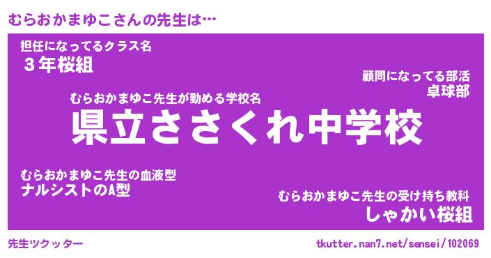 | 伝説のあだ名 | 『不死鳥のスナイパーむらおかまゆこ』 |