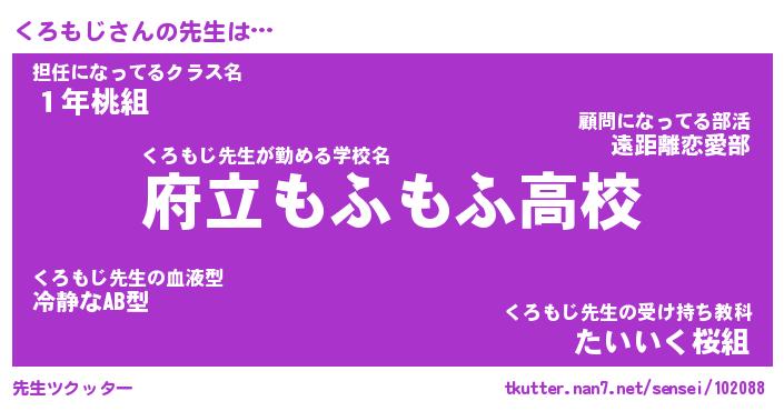 | ファンタジー風あだ名 | 『クロフェル』『エターナルクロモジー』 |