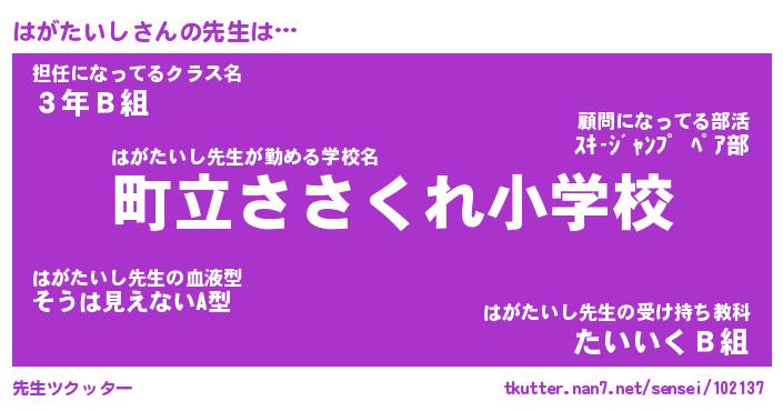 | ファンタジー風あだ名 | 『ハガフェル』『エターナルハガタイシー』 |