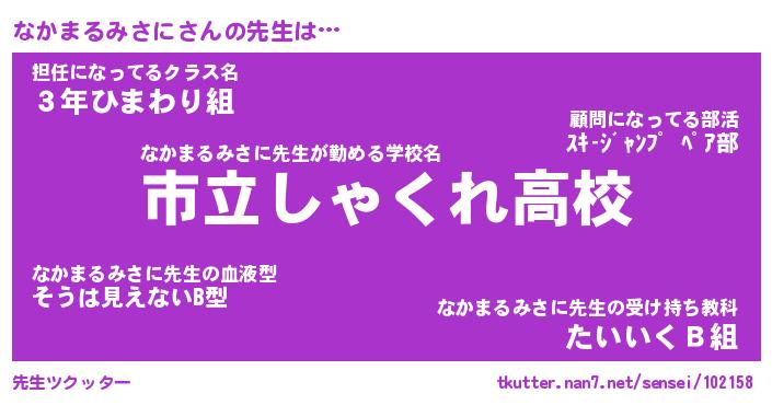 | 伝説のあだ名 | 『伝説のスナイパーなかまるみさに』 |