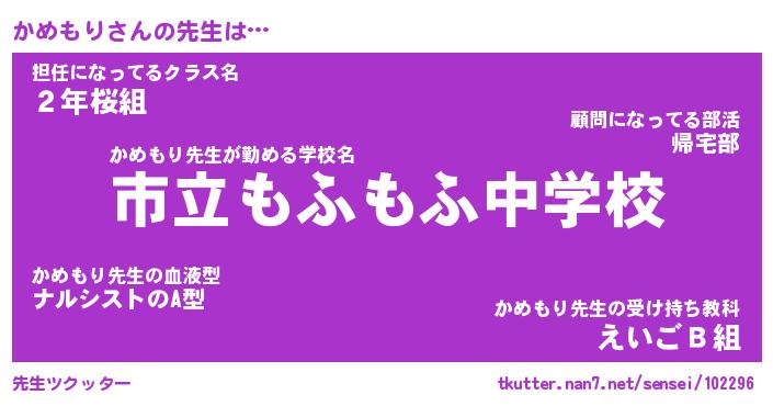 | 意味不明あだ名 | 『ペロリンかめもり』『永久保存かめもり』 |