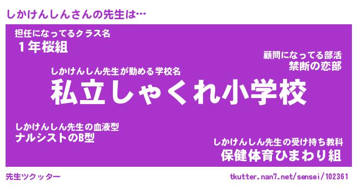 | 男性向けラノベタイトル風あだ名 | 『しかけんしんの憂鬱』 |