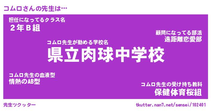 | 2回繰り返すあだ名 | 『コムコム』『ココムム』『ぬめぬめ』 |