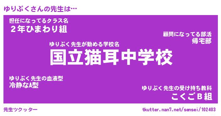 | 意味不明あだ名 | 『ペロリンゆりぷく』『永久保存ゆりぷく』 |