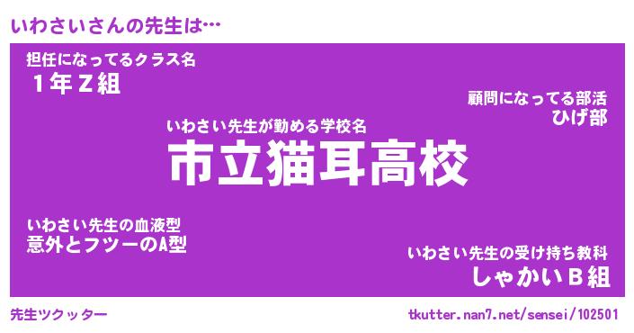 | 意味不明あだ名 | 『ペロリンいわさい』『永久保存いわさい』 |