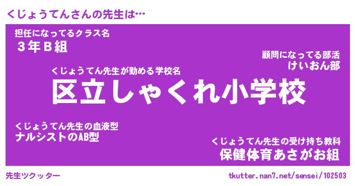| 肩書あだ名 | 『くじょうてん御曹司』 |