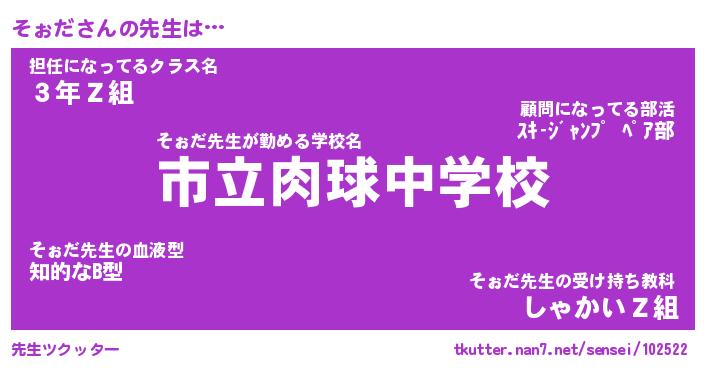 | 意味不明あだ名 | 『ペロリンそぉだ』『そぉだフォーエバー』 |