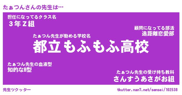 | 意味不明あだ名 | 『ペロリンたぁつん』『永久保存たぁつん』 |