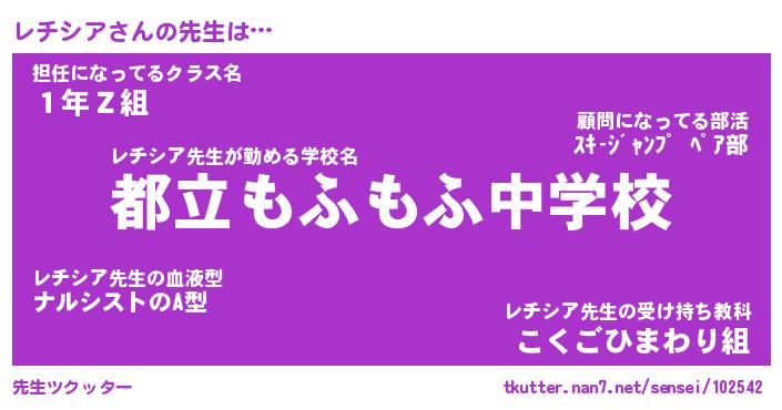 | 肩書あだ名 | 『レチシア店長』『レチシア総理大臣』 |