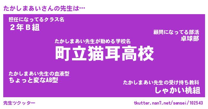 | ヘコむあだ名 | 『たかにー』『豆乳』『たかっ子』 |