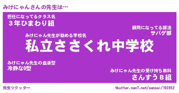 | ファンタジー風あだ名 | 『ミケフェル』『エターナルミケニャンー』 |
