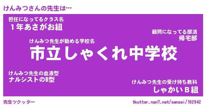 | 意味不明あだ名 | 『ペロリンけんみつ』『永久保存けんみつ』 |