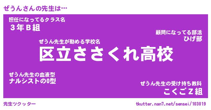 | ヘコむあだ名 | 『ぜうもー』『つくし』『ぜうっ子』 |