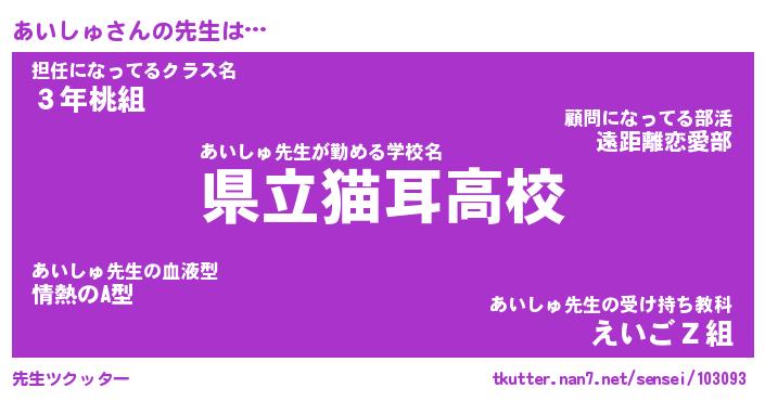 | 意味不明あだ名 | 『ペロリンあいしゅ』『永久保存あいしゅ』 |