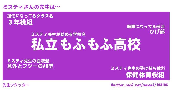 | 恥ずかしいあだ名 | 『プリティーミスティ』『ミスっちょ』 |