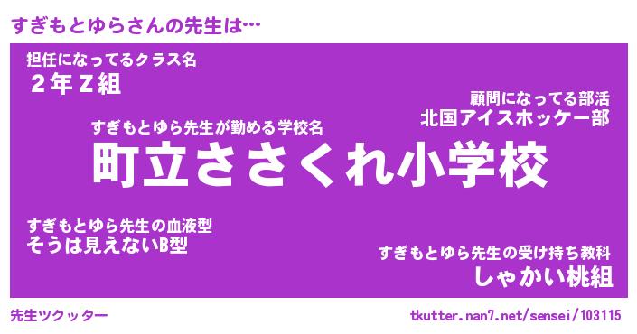 | 伝説のあだ名 | 『封印されしスナイパーすぎもとゆら』 |
