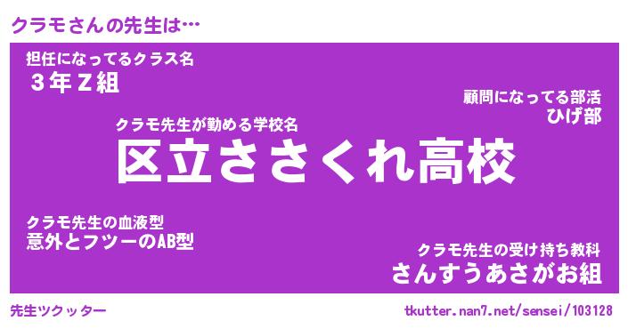 | ヒーロー風カッコイイあだ名 | 『スーパークラモ』『ウルトラクラモマン』 |