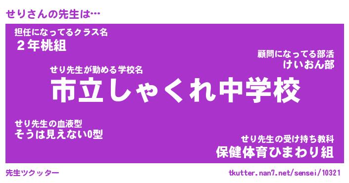 | 可愛いあだ名 | 『せんせん』『せりちー』『せりママ』 |