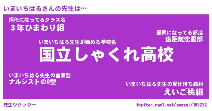 | 伝説のあだ名 | 『伝説のスナイパーいまいちはる』 |