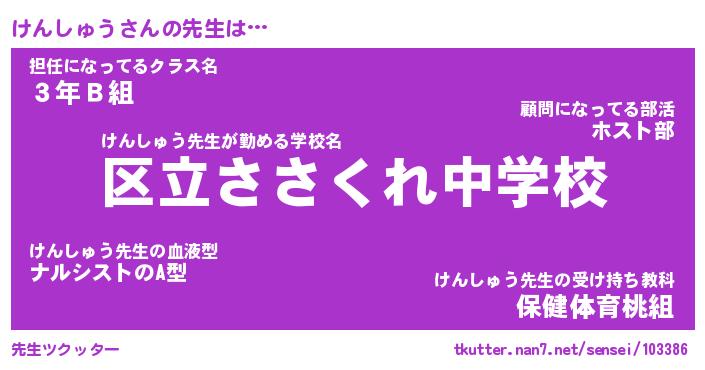 | ファンタジー風あだ名 | 『ケンフェル』『エターナルケンシュウー』 |