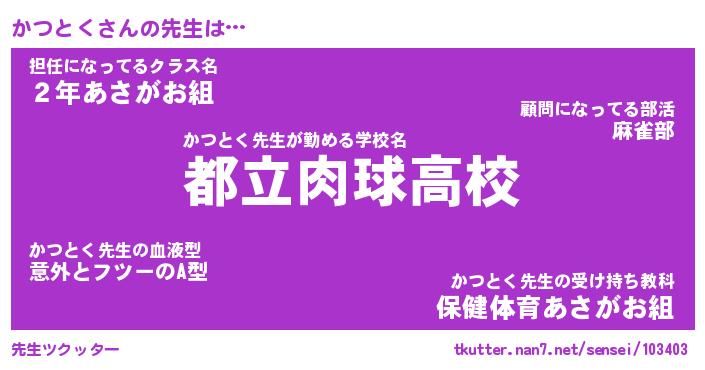 | 意味不明あだ名 | 『ペロリンかつとく』『永久保存かつとく』 |