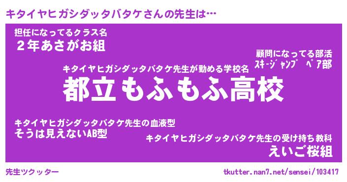 | 意味不明あだ名 | 『ペロリンキタイヤヒガシダッタバタケ』 |
