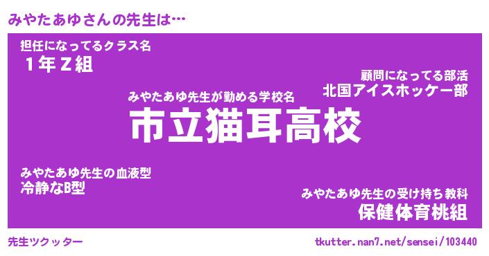 | ファンタジー風あだ名 | 『ミヤフェル』『エターナルミヤタアユー』 |