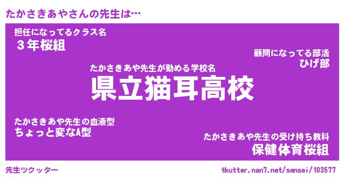 | 肩書あだ名 | 『たかさきあや社長』『たかさきあや教授』 |