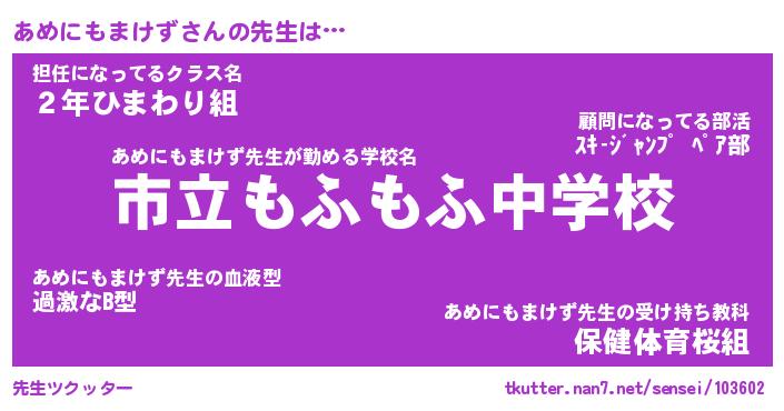 | ヘコむあだ名 | 『あめにゅー』『豆乳』『あめっぺ』 |