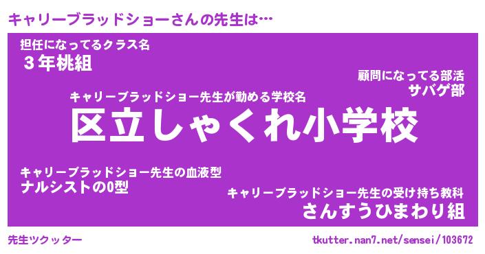 | 男性向けラノベタイトル風あだ名 | 『キャリーブラッドショーアートオンライン』 |