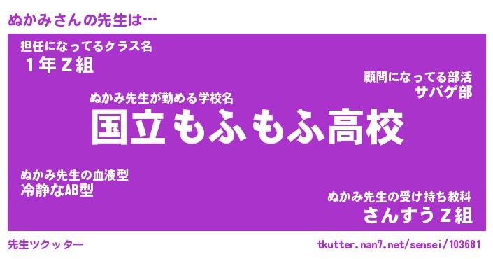 | ヘコむあだ名 | 『ぬかにゅー』『つくし』『ぬかを』 |
