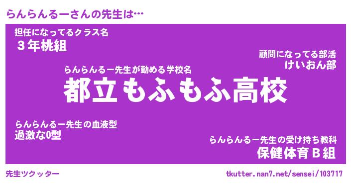 | ヘコむあだ名 | 『らんにゅー』『酢こんぶ』『らんお』 |