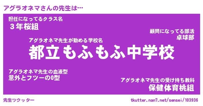 | ヘコむあだ名 | 『アグにゅー』『なまこ酢』 |