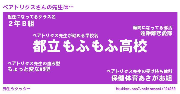 | 男性向けラノベタイトル風あだ名 | 『ベアトリクスの憂鬱』 |