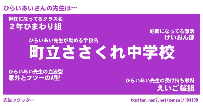 | ヒーロー風カッコイイあだ名 | 『スーパーヒライアイ』『銀牙騎士ヒラ』 |