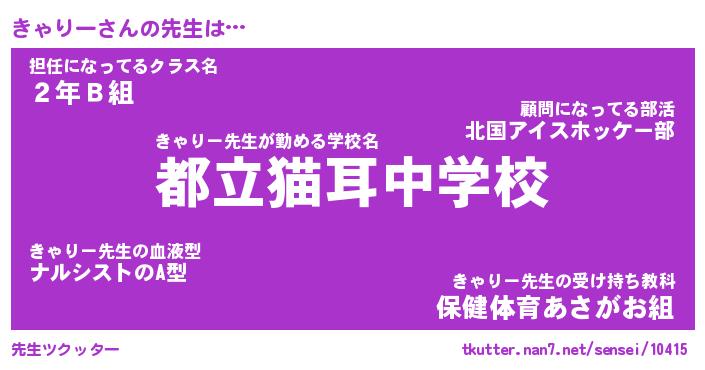 | 意味不明あだ名 | 『ペロリンきゃりー』『永久保存きゃりー』 |