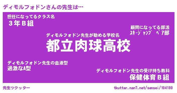 | 男性向けラノベタイトル風あだ名 | 『ディモルフォドンの憂鬱』 |