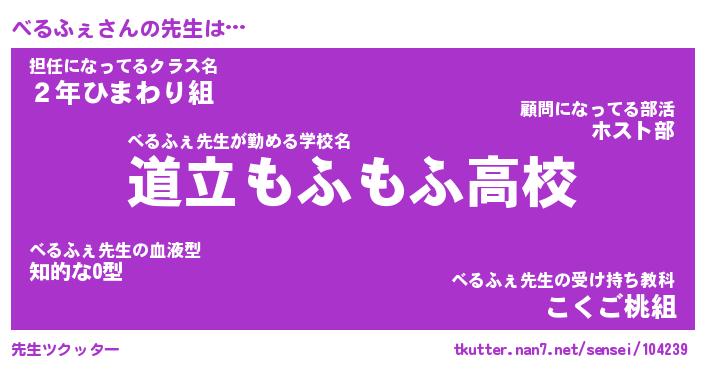 | 意味不明あだ名 | 『ペロリンべるふぇ』『永久保存べるふぇ』 |