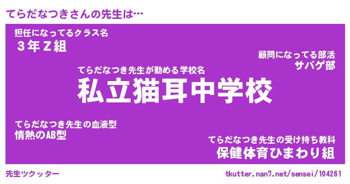 | ヘコむあだ名 | 『てらにー』『牛乳』『てらっぺ』 |