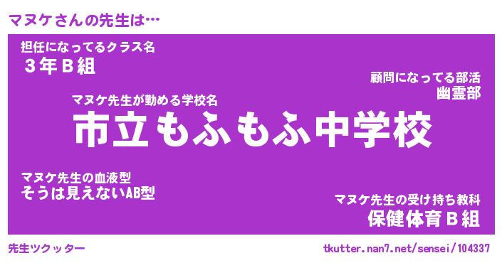 | ファンタジー風あだ名 | 『マヌフェル』『エターナルマヌケー』 |