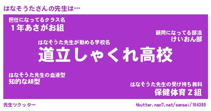 | ポケモン風あだ名 | 『ハナチュウ』『ハナソダネ』 |