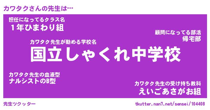 | ヒーロー風カッコイイあだ名 | 『スーパーカワタク』『銀牙騎士カワ』 |