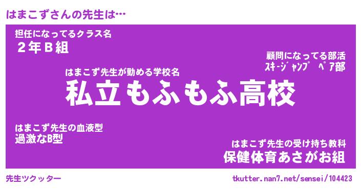 | 意味不明あだ名 | 『ペロリンはまこず』『永久保存はまこず』 |