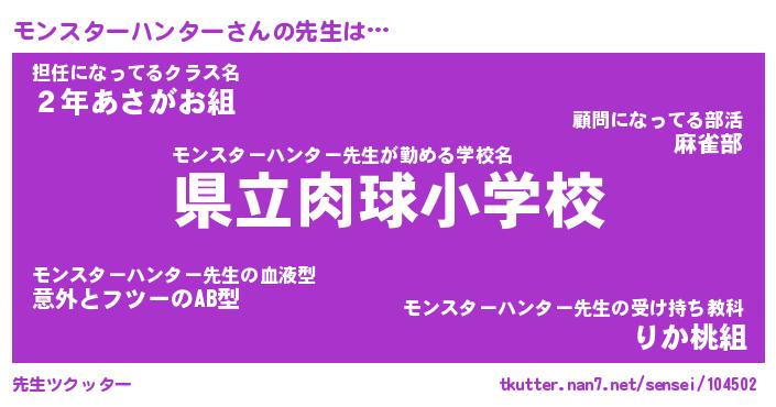 | 男性向けラノベタイトル風あだ名 | 『モンスターハンターの憂鬱』 |