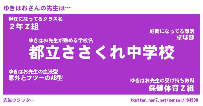| 自動車の名前っぽいあだ名 | 『ユキティマ』『ユクア』『ユント』 |