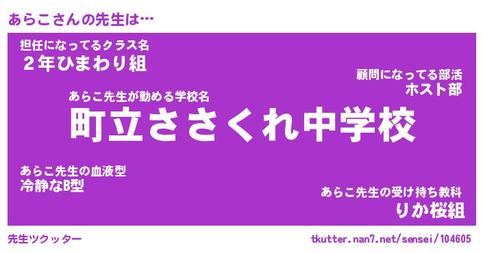 | 肩書あだ名 | 『あらこ社長令嬢』『あらこ大統領』 |